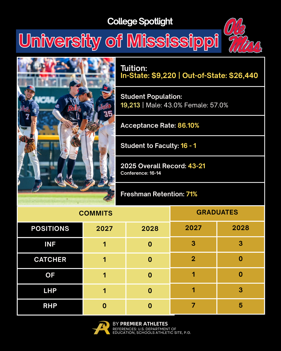 Here's what every parent of a 2027 or 2028 needs to hear: They're going all-in on 2027 and 2028 recruits right now. Ole Miss knows how to reload fast, and they're building their next championship roster as we speak.If your athlete is looking to play at a program like Ole Miss think about joining the Premier Athletes Program.