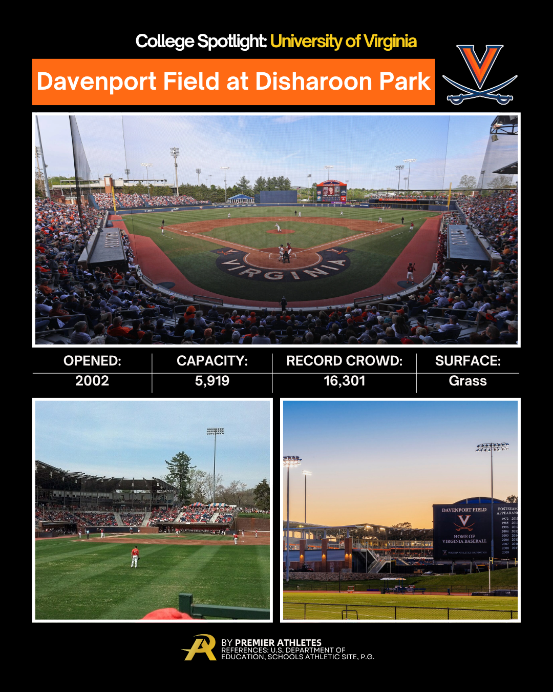 The University of Virginia is ranked the #2 best-value public university and the #4 public university in the U.S. It also has one of the best D1 baseball teams in the country.